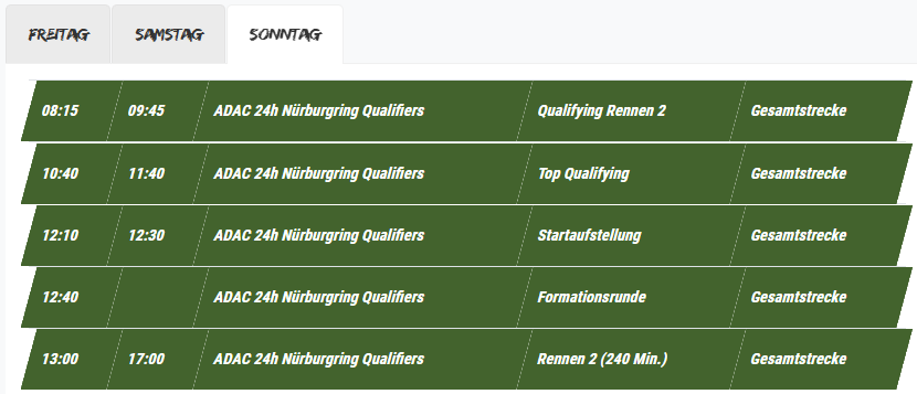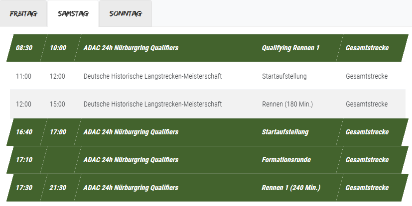 Sobotní závod na čtyři hodiny startuje v 17:30, zatímco nedělní je také na čtyři hodiny, ale závod začne ve 13:00.